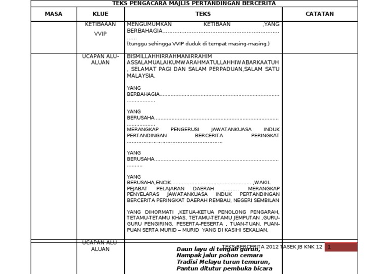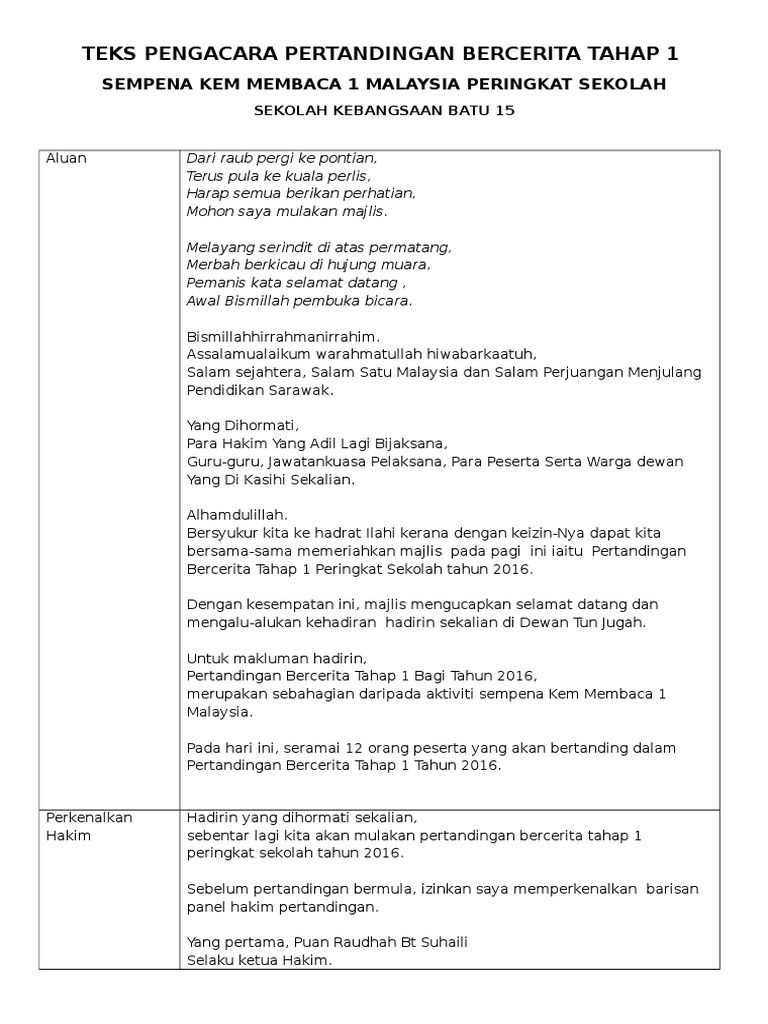 Teks Pengacara Pertandingan Bercerita Tahap 1 Pdf