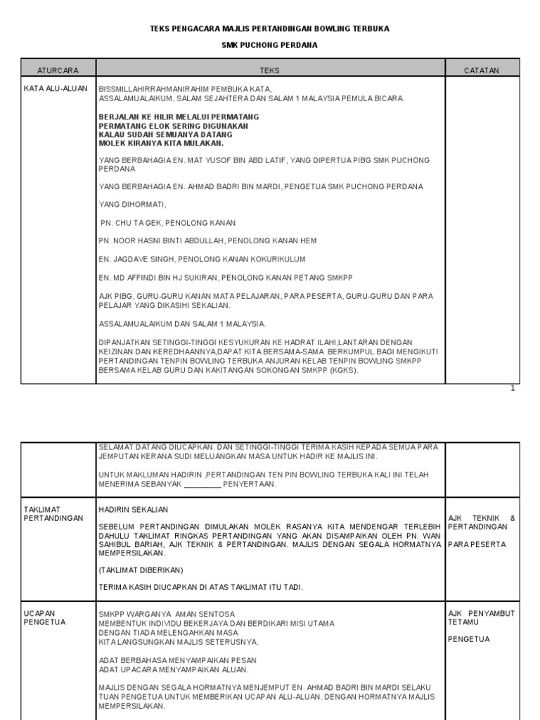 Teks Pengacara Pertandingan Bowling Edit Pdf