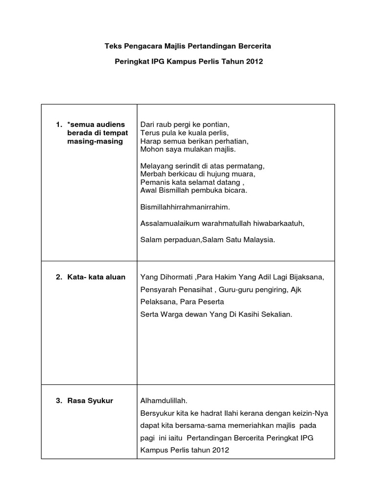 Teks Pengacara Majlis Pertandingan Bercerita Tahap 1 Dan 2 Pdf