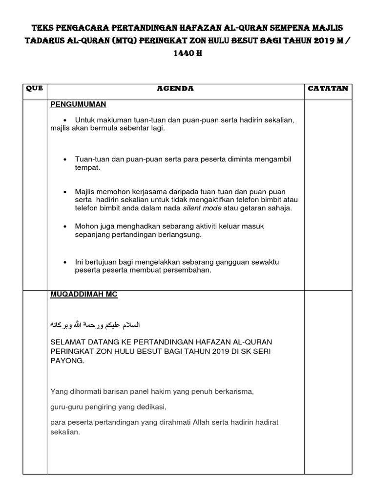 Contoh Teks Pengacara Hafazan Al Quran Pdf