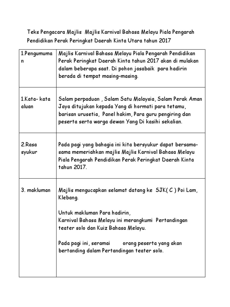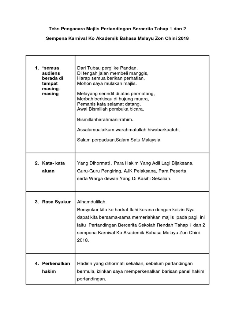 Teks Pengacara Majlis Pertandingan Bercerita Bahasa Melayu Sjk Pdf